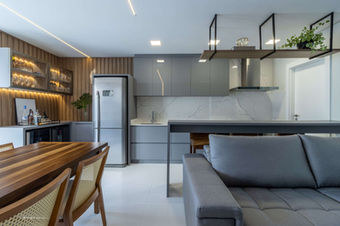 Criação do projeto de interiores, com imagens 3D. Contemplando detalhamento de marcenaria, pedra e iluminação.
